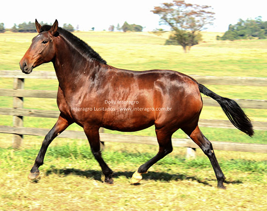 Dolly Interagro – a daughter of Quinio Interagro and Samantha Interagro – was a magnificent bay brood mare, 1.65 m, tall at 5 years of age. In her shirt existence, Dolly left a beautiful progeny of superior quality. Dolly’s dam, Samantha Interagro, was imported ‘in uterus’ from Coudelaria Núncio of Portugal, being the only pure Nuncio-blood mare born in the Americas, leaving a Interagro progeny of outstanding individuals. Dolly’s sire, Quinio Interagro is one of the sons of the legendary Xique-Xique (CI), selected as official Interagro stallion, having so far produced more than 13o descendants.
