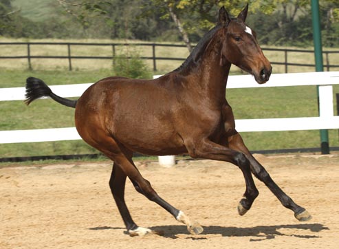 Hegemonia do Vouga is destined for success in the competition arena and the breeding shed. With a fantastic conformation, this bay filly is the complete package of lightness, elasticity and balance. Her engagement in the hindquarters and excellent action up front make her an excellent sporthorse prospect and are reflective of her lineage.
