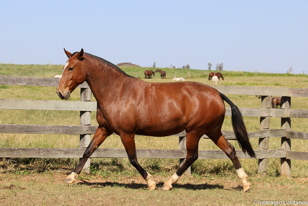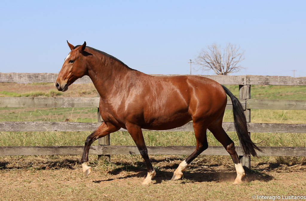 Strong and beautiful bay mare with a good topline, Orquestra is out of Gafieira Interagro, a tall black broodmare revised with 72 points. Gafieira is from the buckskins Talita Interagro and Tufão Interagro, a much-loved golden buckskin stallion known for the excellent temperament offspring he produced, awarded in Driving, Working Equitation and Dressage.