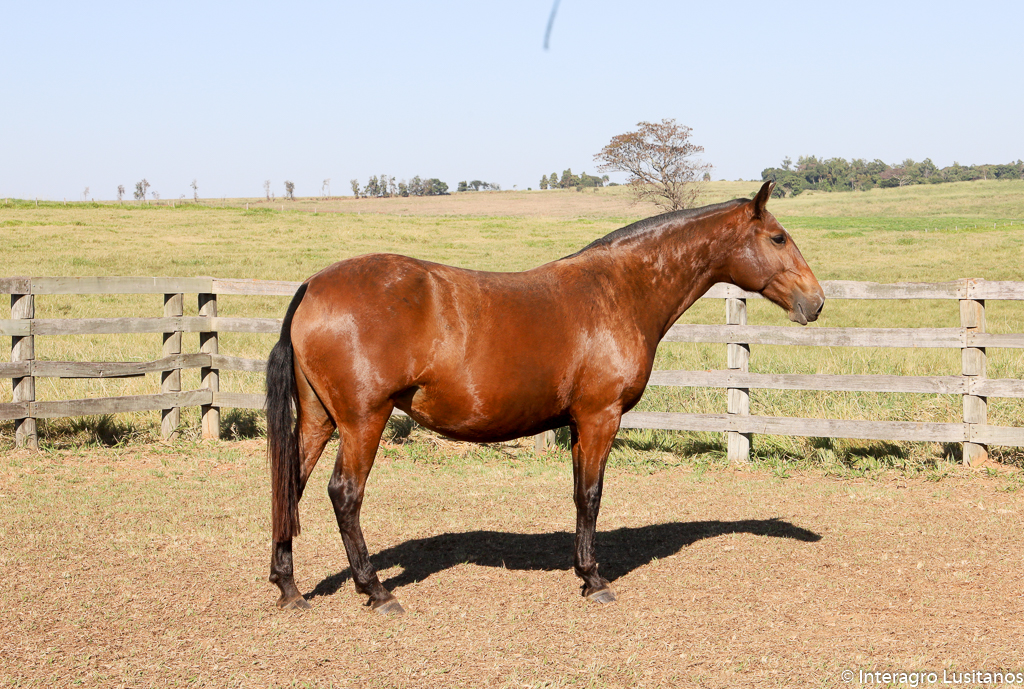 Sired by Empreiteiro Interagro, bay stallion who began his career in the discipline of Working Equitation, and is currently schooling the Small Tour/PSG, demonstrating talent for all of the movements which seem to come very easy to him. Empreiteiro is also known for his willing, easy-going temperament, sharp mind, and a clear enjoyment of his work, making him a joy to ride and train. His offspring have very good gaits with lovely movement and suspension. He is the son of Perdigueiro (MAC), one of the most influential sires at Interagro.