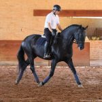 Extremely attractive stallion with a beautiful, light and forward front; prominent withers and a very pretty head. Pródigo has a beautiful silhouette, strong legs and is very correct and gentle. His canter is very good and well balanced and he carries the rider with ease.