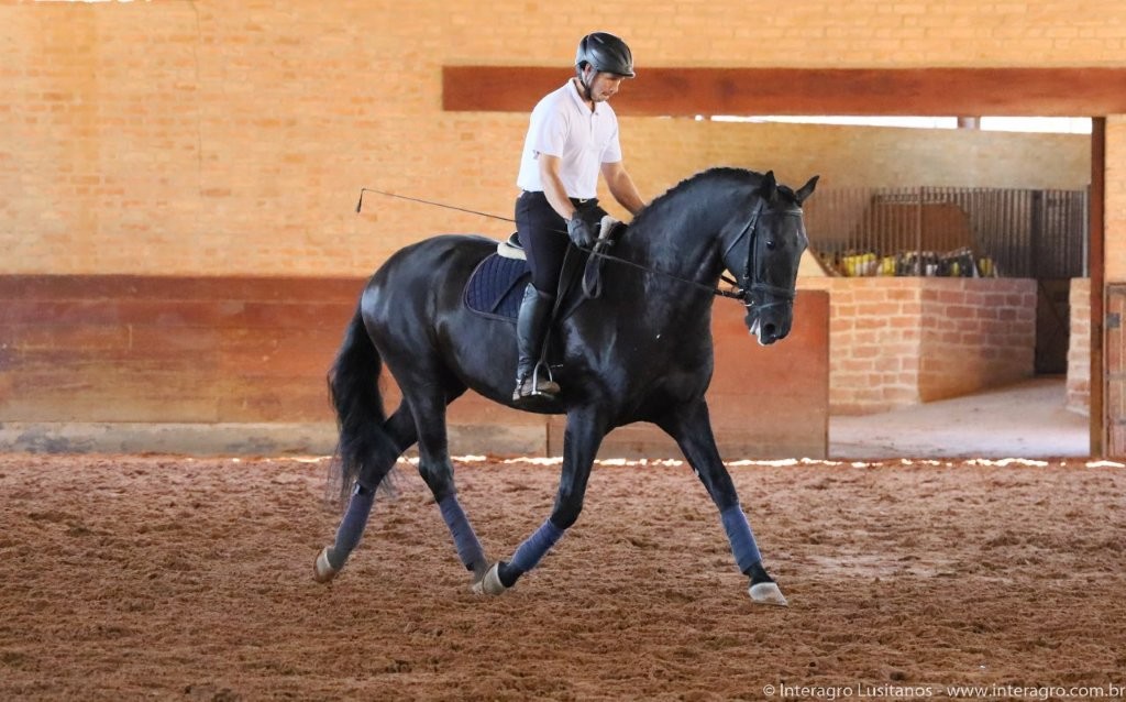 Pródigo is the result of the repetition of the successful mating that generated the beautiful Opípara Interagro, sold at the XVIII Interagro Yearlings Auction in 2019. Out of the flea bitten mare Greta Interagro, a daughter of one of the most renowned stallions of the breed Ofensor (MV), Progeny Champion in Brazil and Portugal. Greta’s mother is Morgada (MAC), a mare imported from the famous Coudelaria Coimbra in Portugal and approved with 77 points; she is the daughter of Zebra (MAC) with Distinto (MAC), Grand Champion in Lisbon, producer of great and excellent progeny in Brazil and Portugal. Several products from Morgada were used in Interagro’s genetic program: Quiromante Interagro, Vedete Interagro, Destinado Interagro (awarded in Classical Dressage and in Morphology) and Greta Interagro.