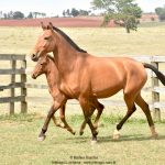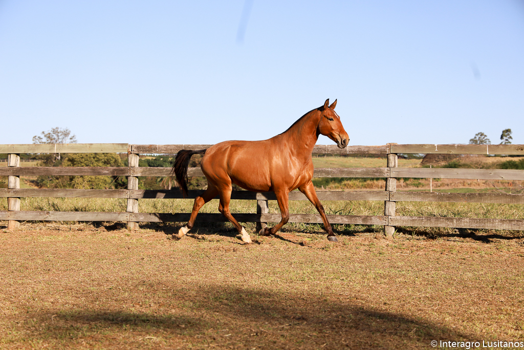 Her dam is the sensational Coimbra Radiosa (MAC), a very feminine and correct gray brood mare that produced equally beautiful and extremely functional Lusitanos, all with great movement and cadence. Radiosa is the daughter of Larápio (MAC), a beautiful stallion who served in Brazil before being sold to the USA. In addition to Radiosa, two more daughters of Larápio were imported by Interagro: Rainha (MAC) and Redonda (MAC). Among its products are the males Amintas Interagro and Hobbit Interagro, both awarded in Classical Dressage in the United States. Several of her daughters were and are used in our genetic program: the late black Ximena Interagro by Nicola (MAC), the full sisters Collection Interagro and Ginger Interagro by Ofensor (MV). His daughters are also the bays Quadrama by Bungo Interagro and Resposta Interagro by Luca Interagro.