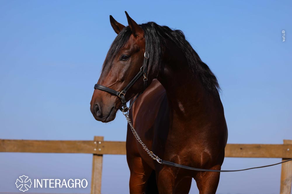 Out of the gorgeous bay broodmare approved with 75.50 points, Hispânia Interagro, a daughter of Bungo Interagro, a stallion awarded in Classical Dressage and a producer of highly functional animals such as Hamilcar Interagro (Morphology and Dressage), Hiero Interagro (Dressage) and Hobbit Interagro (Dressage in the USA).