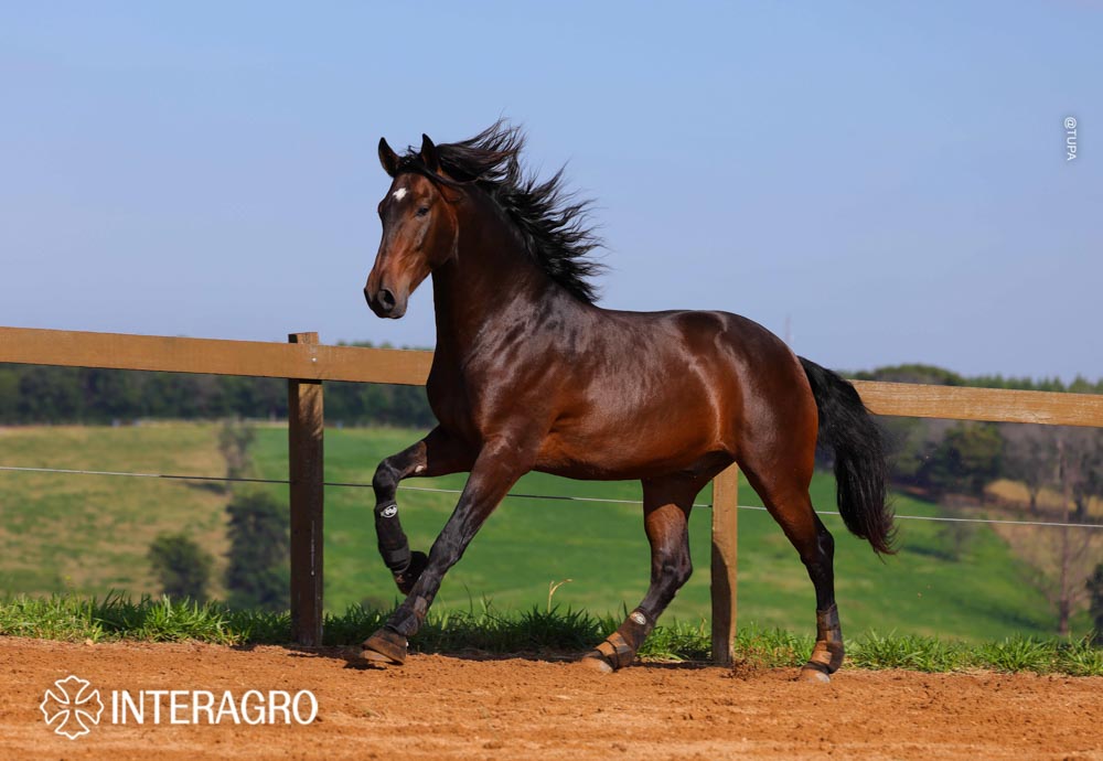 His sire is Zíngaro Interagro, a black stallion of incredible rideability and temperament, and one of Interagro’s most influential stallions. Zingaro’s proven ability to stamp progeny with his phenomenal mind and athleticism is why he has become such a prolific sire. Zíngaro’s excellent pedigree combines the most influential names in Interagro’s breeding program, making him a universal stud that will always possess the genetic counterpart to all mares he has been paired with at Interagro.