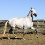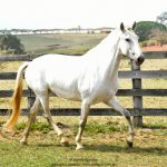 Quinzana is very classy, moves well and has a beautiful head like her father Hanibal Interagro, a striking stallion with presence, height, and spectacular movement. This eye-catching grey stallion’s beauty and demeanor captures the attention and admiration of any dressage enthusiast, particularly his lofty movements: he has a quick and powerful hind leg and exceptional freedom through the shoulder coupled with excellent suspension. He has proven to stamp his progeny with both his looks and talent. Hanibal is the last son of Legendário do Mirante (by Novilheiro MV). His dam, Berta Interagro, is out of awarded Ninfeta Interagro by Xique-Xique (CI) with the International Great Champion Kiwi do Mirante, a daughter of Apolo do Mirante by (Broquel CN), the first Great Champion bred by Interagro. Berta´s parents are Quixote Interagro (by Danúbio III MV) and Dançarina II (RC) by Venturoso III (MV).