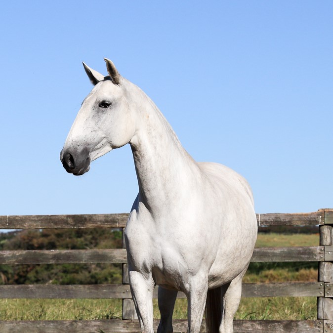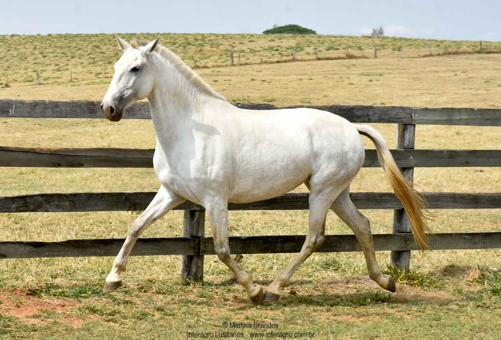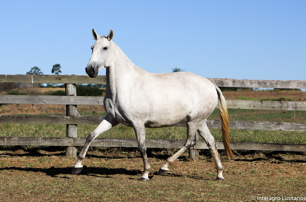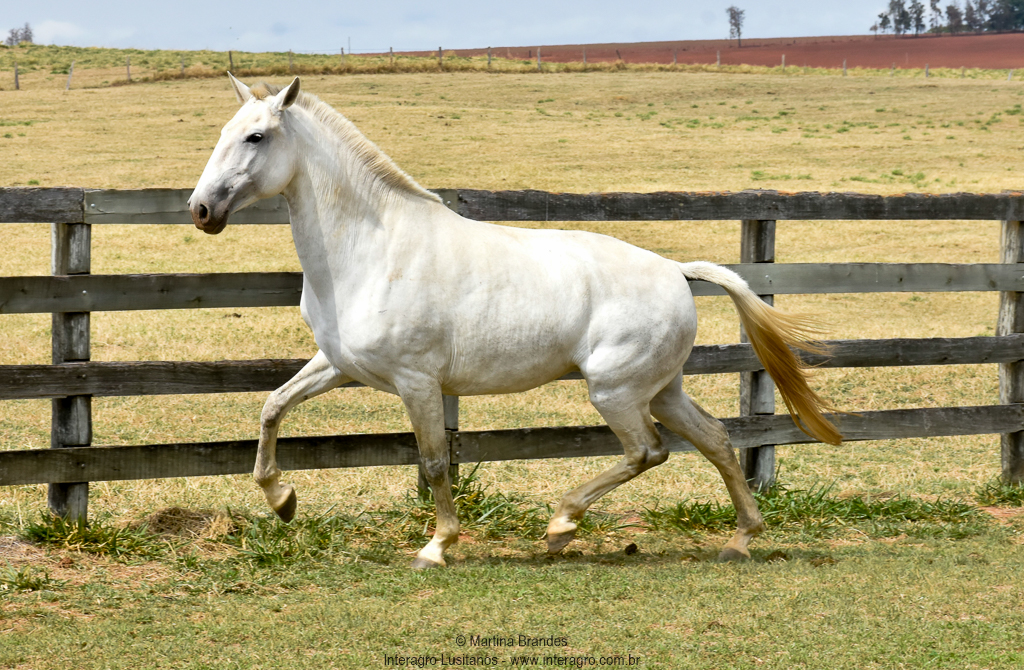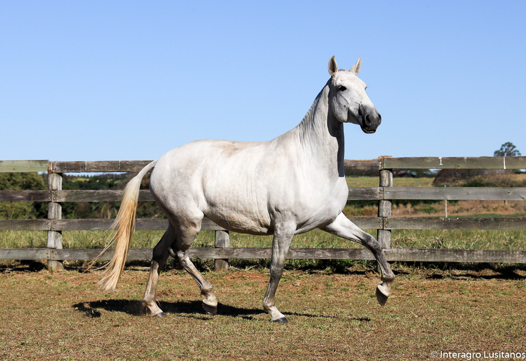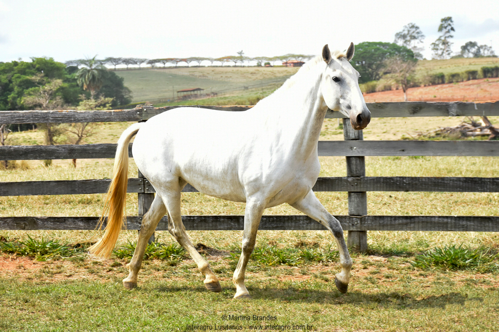 Daughter of Cleópatra Interagro, outstanding brood mare revised with 71 points who produced highly talented and quick learners Lusitanos such as the full brothers Galhardo Interagro and Intef Interagro (by Faraó JHC) who have been standing out on the Dressage rings in the years 2019 and 2020 under the saddle of Joana Marie Sliwik (SP) in the Third Level. With Bungo Interagro, Cleópatra produced Hiero Interagro, also awarded in the Dressage under the saddle of Carlos Renato Veiga Brito (MG). Cleópatra is a daughter of Pecúnia Interagro by Yacht (SA) and Jutlândia (SA), Pecúnia is the mother of Vade-Mecum Interagro, one of the dressage champions bred and exported by Interagro. Jutlândia (SA) had many awards at International conformation shows and produced, among others, the stallion Quinárius Interagro, Great International Champion and the sire of dressage champion Zepelim Interagro. Cleopatra´s sire is Tufão Interagro, a beutiful golden buckskin stallion who also had a great career in Dressage, Tufão is known for producing an offspring of excelent character and docility.