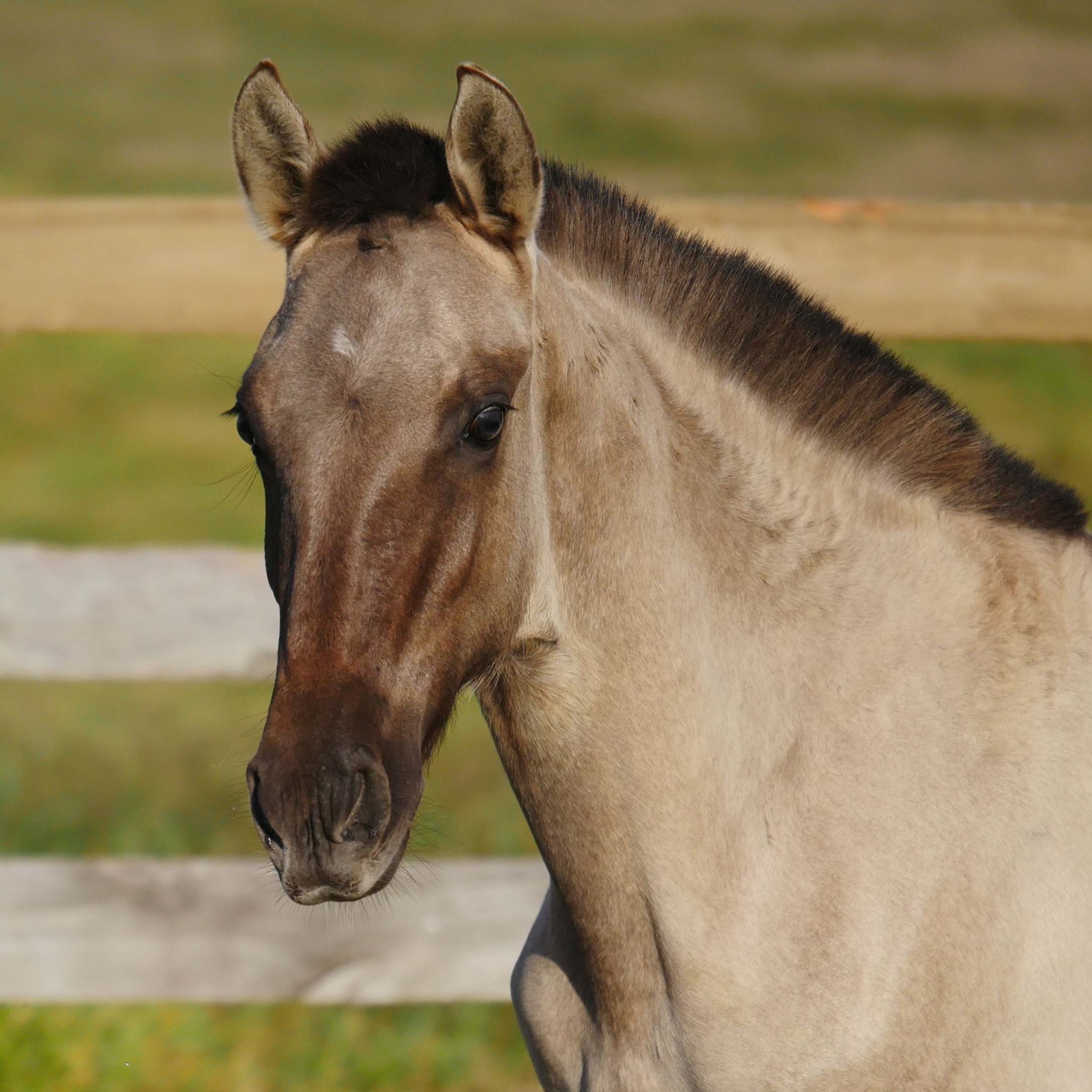 Beautiful and typical buckskin, very well built and with good movement, Recolta is the second daughter of the also buckskin Ilógica Interagro, broodmare revised with 73.50 points, daughter of Condessa Interagro and Quinio Interagro. Ilógica has a beautiful zebra-bay coat and is very calm with correct gaits.
