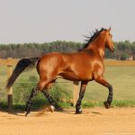 Régulo is very attractive, correct and very meek. Bay with a strong structure and a very good mover with excellent rideability. He has three quality gaits, a good walk, a super trot and a good canter, as well as very good suspension. He is very sporty, with plenty of suspension and range of motion, he is sweet, comfortable and safe for amateurs.