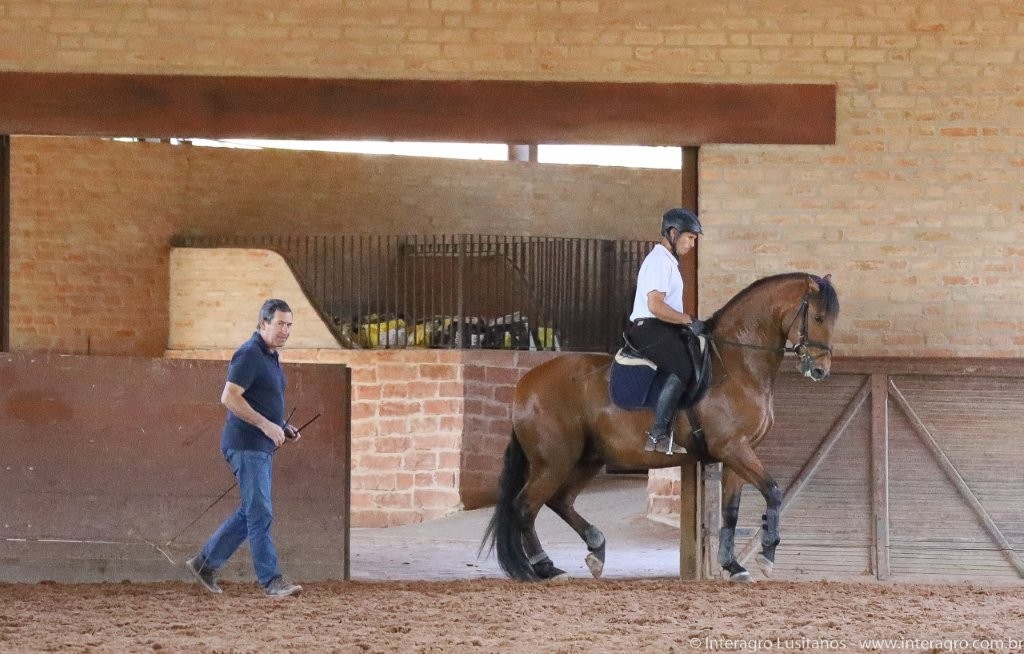 Sired by Empreiteiro Interagro, bay stallion who began his career in the discipline of Working Equitation, and is currently schooling the Small Tour/PSG, demonstrating talent for all of the movements which seem to come very easy to him. Empreiteiro is also known for his willing, easy-going temperament, sharp mind, and a clear enjoyment of his work, making him a joy to ride and train. His offspring have very good gaits with lovely movement and suspension. He is the son of Perdigueiro (MAC), one of the most influential sires at Interagro.