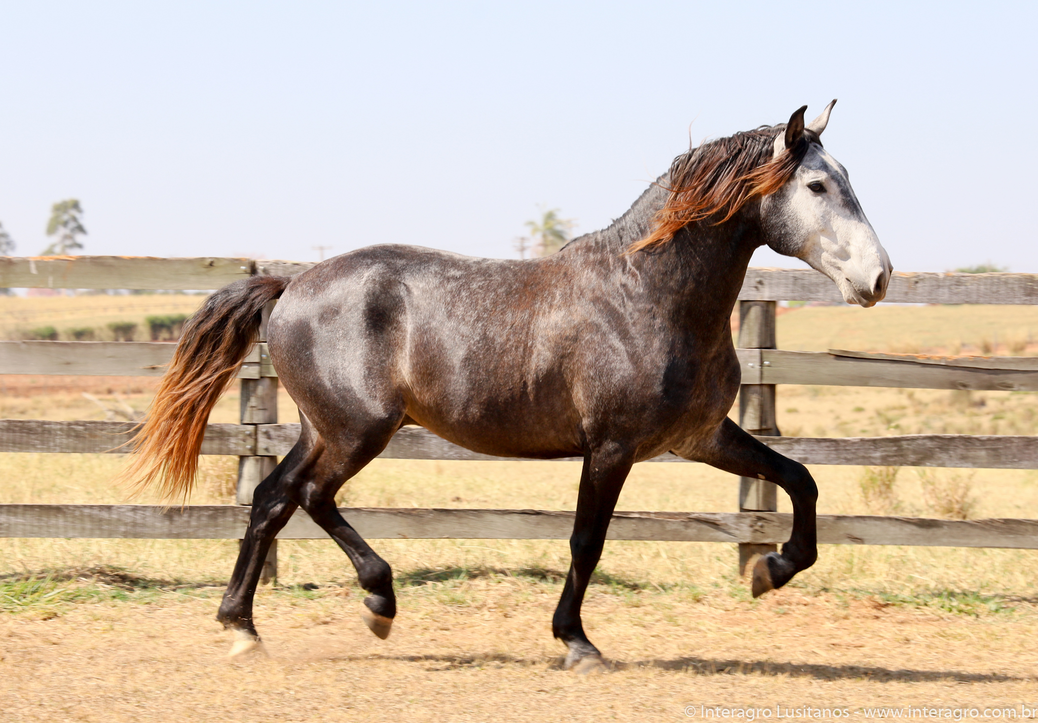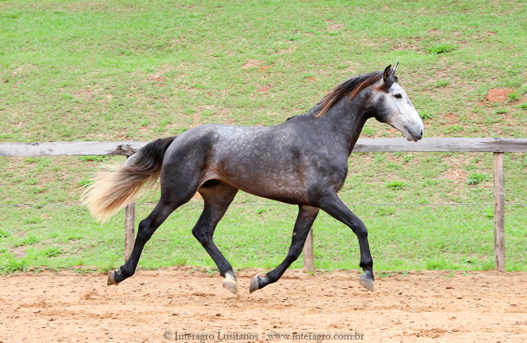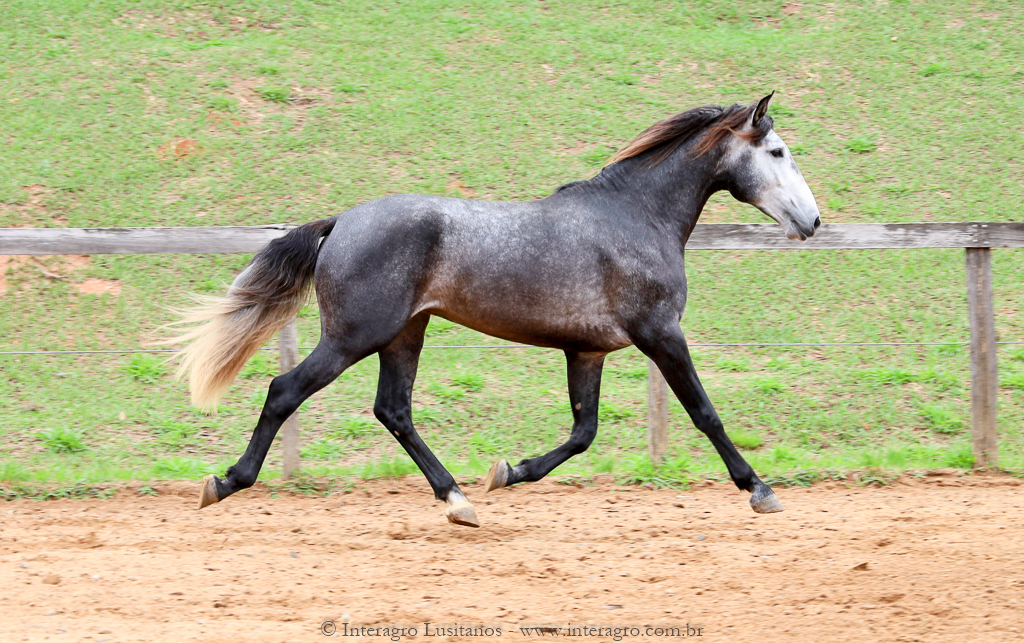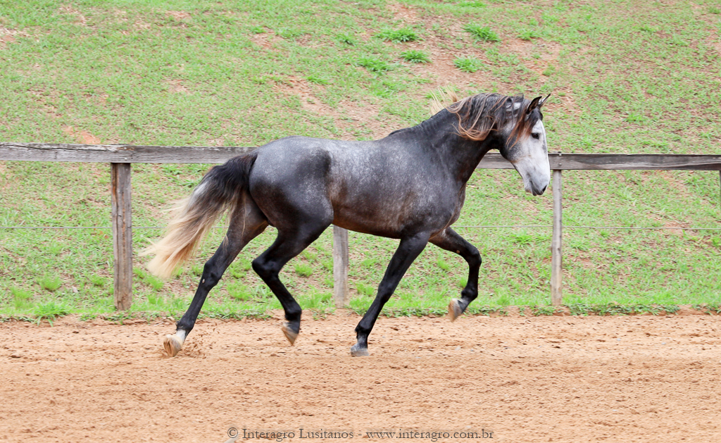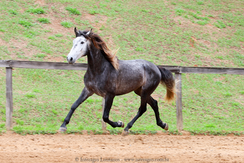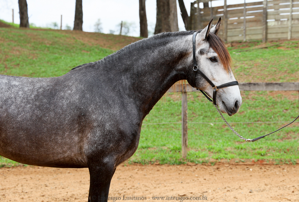 Son of Lord Interagro, a beautiful baroque style stallion, very typical and with an expressive head and neck. Lord has very good character, correct gaits and good rideability. Son of Xaidar Interagro, one of the stars of her generation given the quality and special characteristics of her pedigree, approved with 70 points and one of the largest and most beautiful daughters of Quinio Interagro. Xaidar is a daughter of Nobreza (MAC), also bay, bred by Coudelaria Coimbra, of extraordinary beauty, revised with 81 points. Lord´s, Destinado Interagro, was a horse with excellent gaits and approved as a stallion with 71 points. He was the son of Morgada (MAC) with Noblíssimo Interagro, he produced excellent progeny with the great qualities of his much sought after lineage, among them Locrus and Lombardo Interagro, both awarded in Dressage.