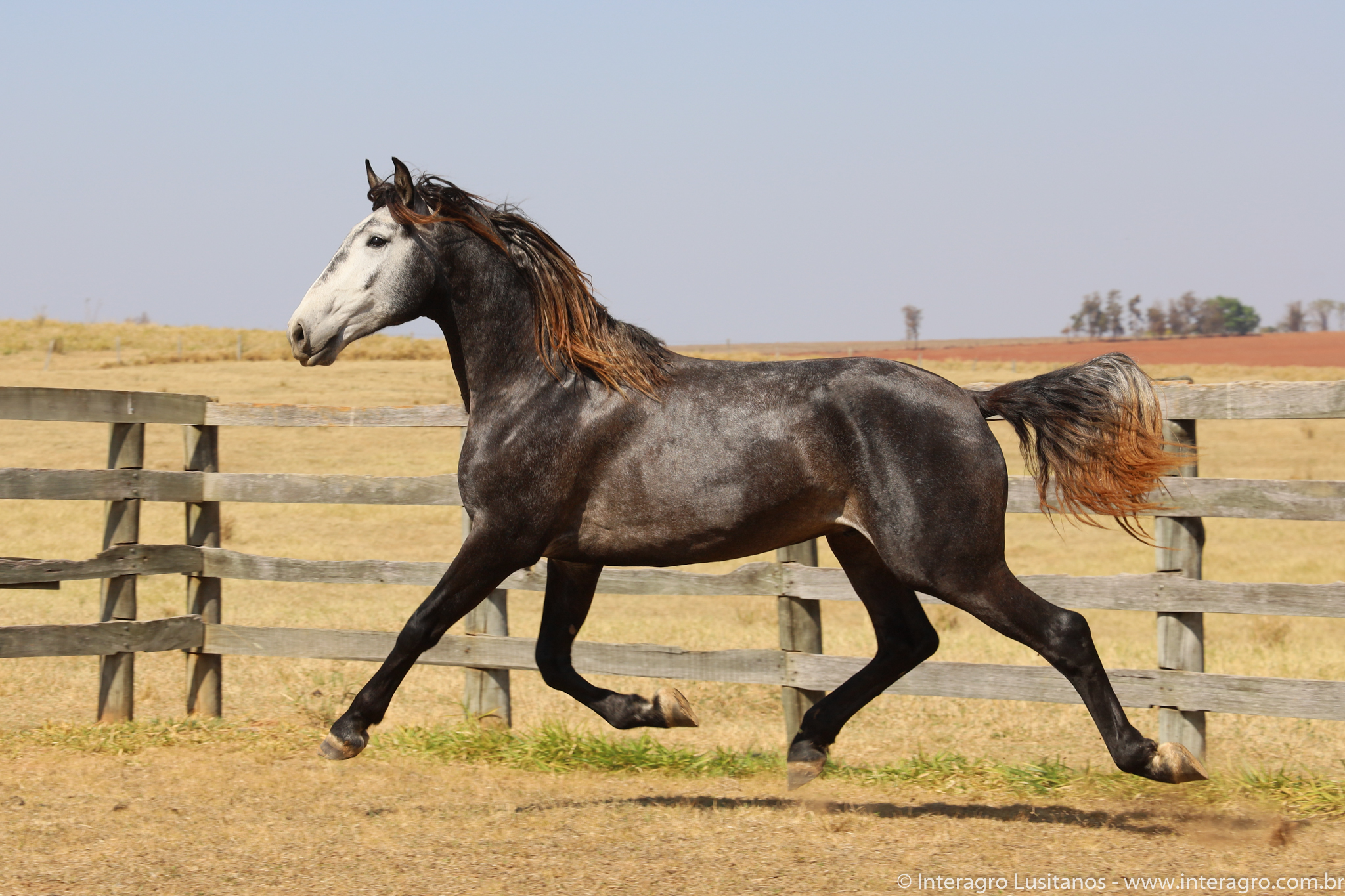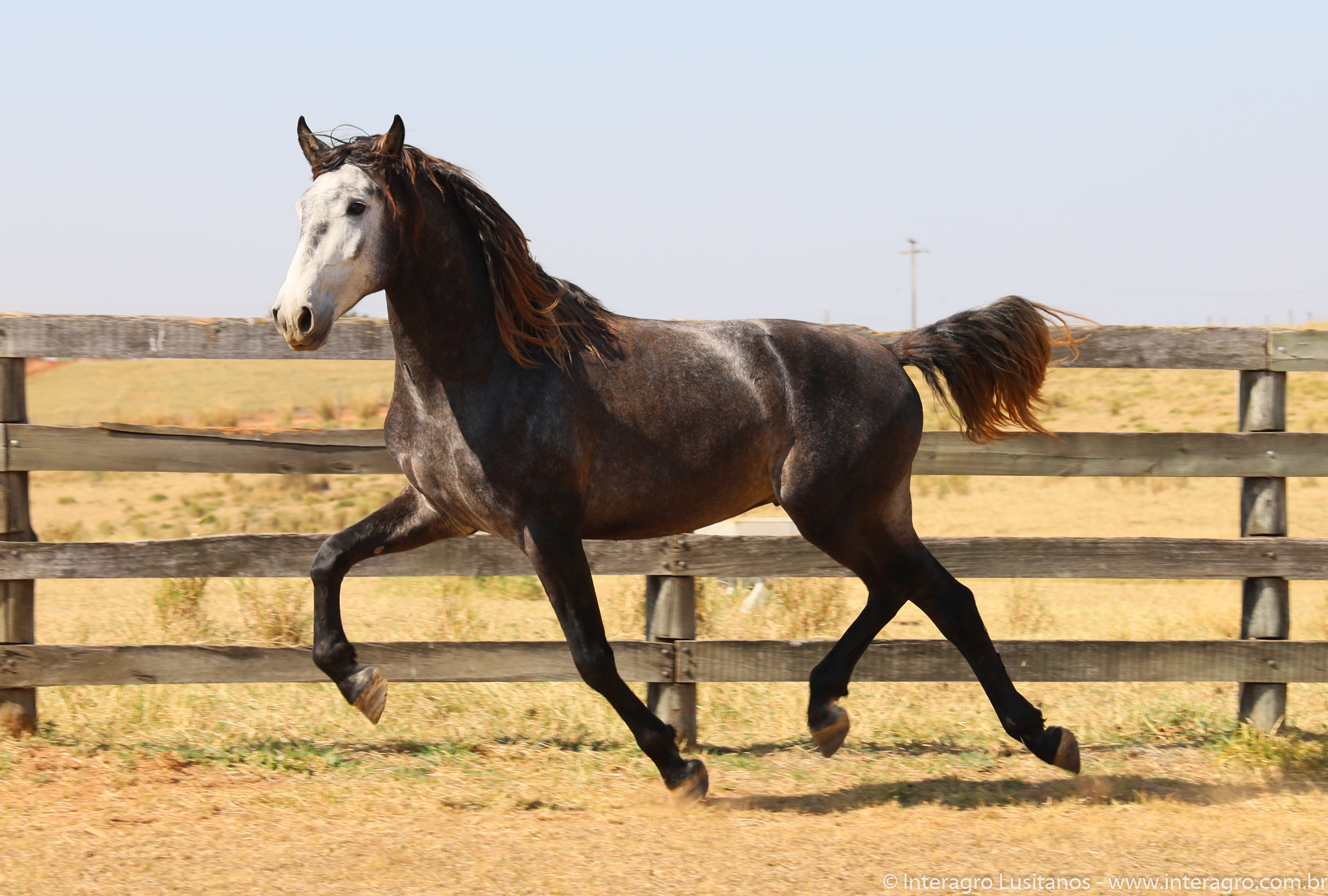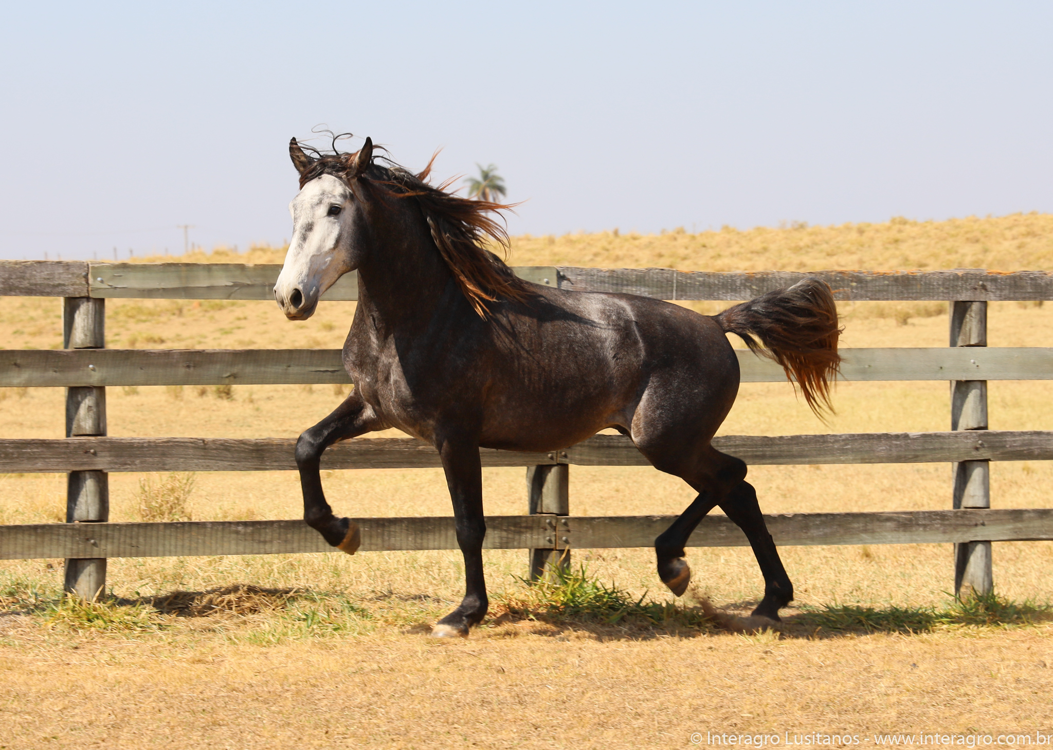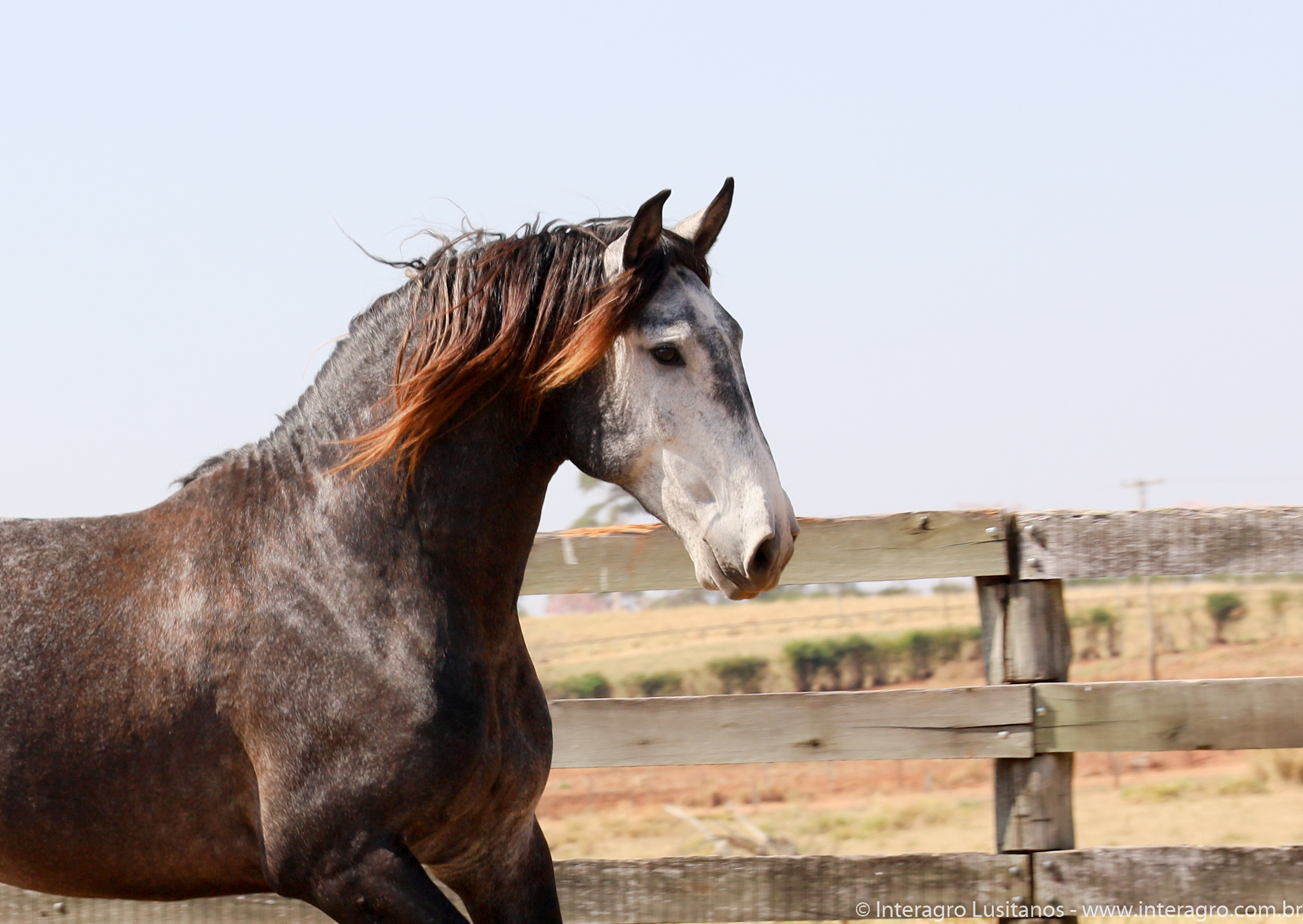 Son of Lord Interagro, a beautiful baroque style stallion, very typical and with an expressive head and neck. Lord has very good character, correct gaits and good rideability. Son of Xaidar Interagro, one of the stars of her generation given the quality and special characteristics of her pedigree, approved with 70 points and one of the largest and most beautiful daughters of Quinio Interagro. Xaidar is a daughter of Nobreza (MAC), also bay, bred by Coudelaria Coimbra, of extraordinary beauty, revised with 81 points. Lord´s, Destinado Interagro, was a horse with excellent gaits and approved as a stallion with 71 points. He was the son of Morgada (MAC) with Noblíssimo Interagro, he produced excellent progeny with the great qualities of his much sought after lineage, among them Locrus and Lombardo Interagro, both awarded in Dressage.