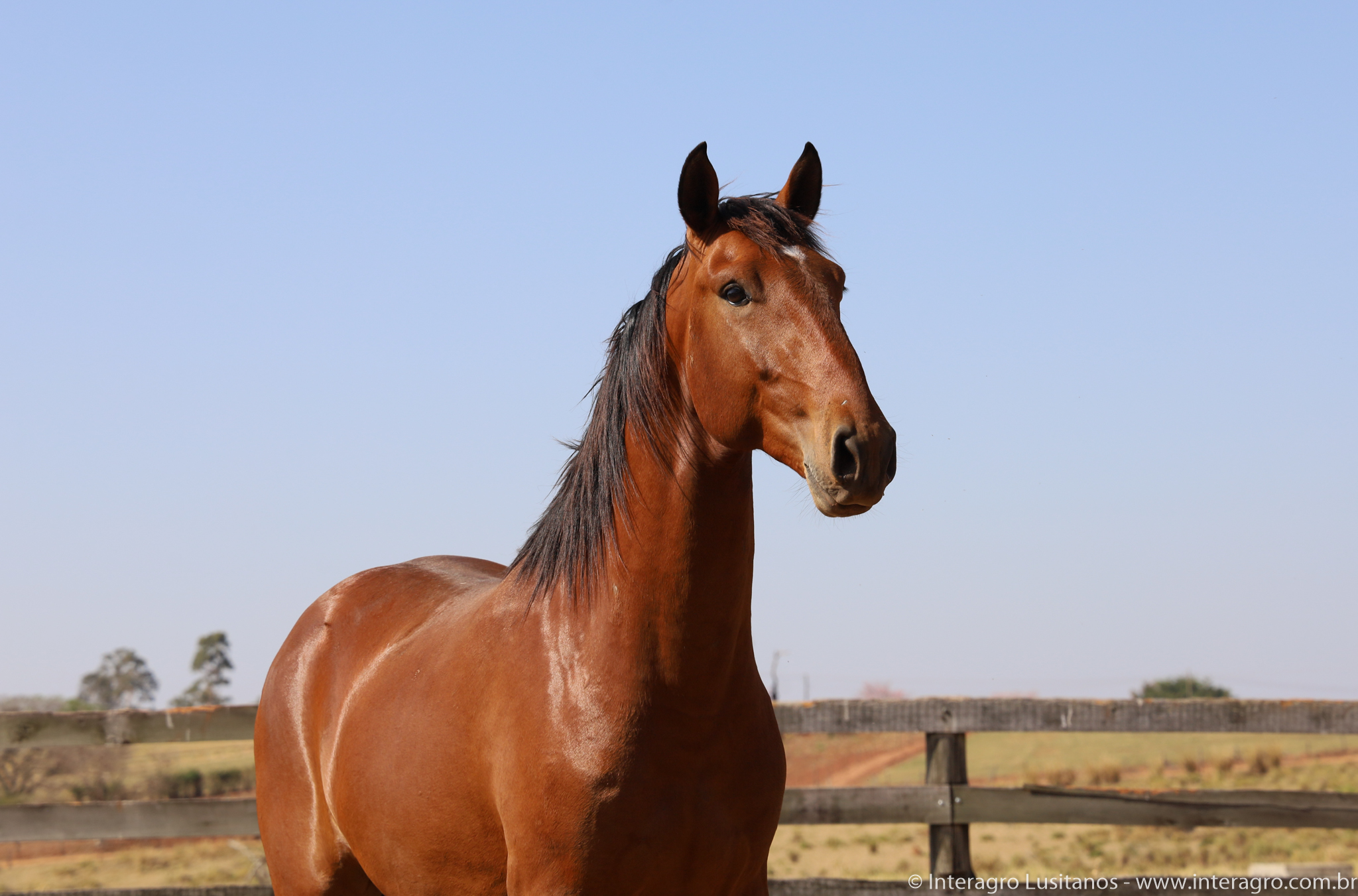 He is a full brother to Matutino Interagro. Out of Abdera Interagro, a top producing mare with four daughters in Interagro’s breeding program: Fenícia Interagro, Gazuza Interagro, Inércia Interagro – approved at the end of 2019 with 79.50 points – and Joeira Interagro. Among their male sons, Esparteiro Interagro, Matutino Interagro and Osmond Interagro stand out, all three sold to the USA and Lusitano Interagro, the most valued foal at the 15th Interagro Yearlings Auction in 2015. Abdera’s dam is the gray Ociosa Interagro, a gold medal winning mare revised with 77 points. And her sire, Nicola (MAC), is a striking buckskin stallion who passed away in 2019 at 25 years old. Nicola was famous for his offspring, which were easily distinguished by their straight-forward, sweet temperaments and incomparable rideability. Several of his offspring have won important prizes in North American and Brazilian National Shows.