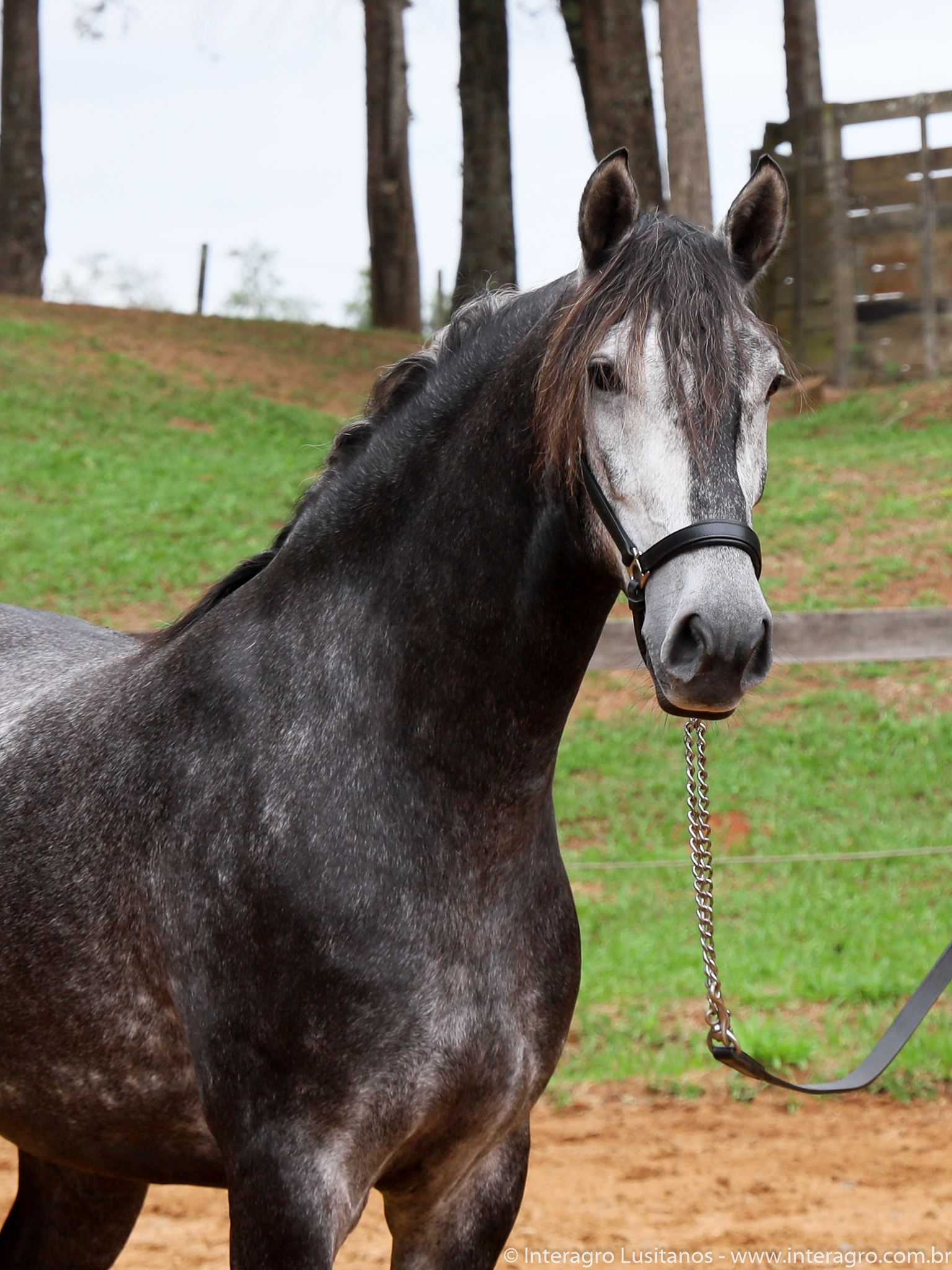 He is the first son of Madrinha Interagro, a very impressive young mare, with great structure and size. Her dam Altamira Interagro is a broodmare of 100% Veiga lineage revised with 72,50 points. Altamira is by Perdigueiro (MAC), stallion renowed by its offspring of excellent temperament and ride ability. Her dam is the Núncio Lisboa (JNU), revised with 74 points. Madrinha is sired by Arges Interagro, a stunning dark bay stallion with an exceptional pedigree highlighted by his sire, Obtuso Interagro: Yacht (SA) x Cigana III (MLC), who before leaving Brazil for the United States was shown successfully in upper level dressage. Arges also combines the genealogy of two of the most important Interagro mares, Cyclope (SA) and Cigana (MLC).