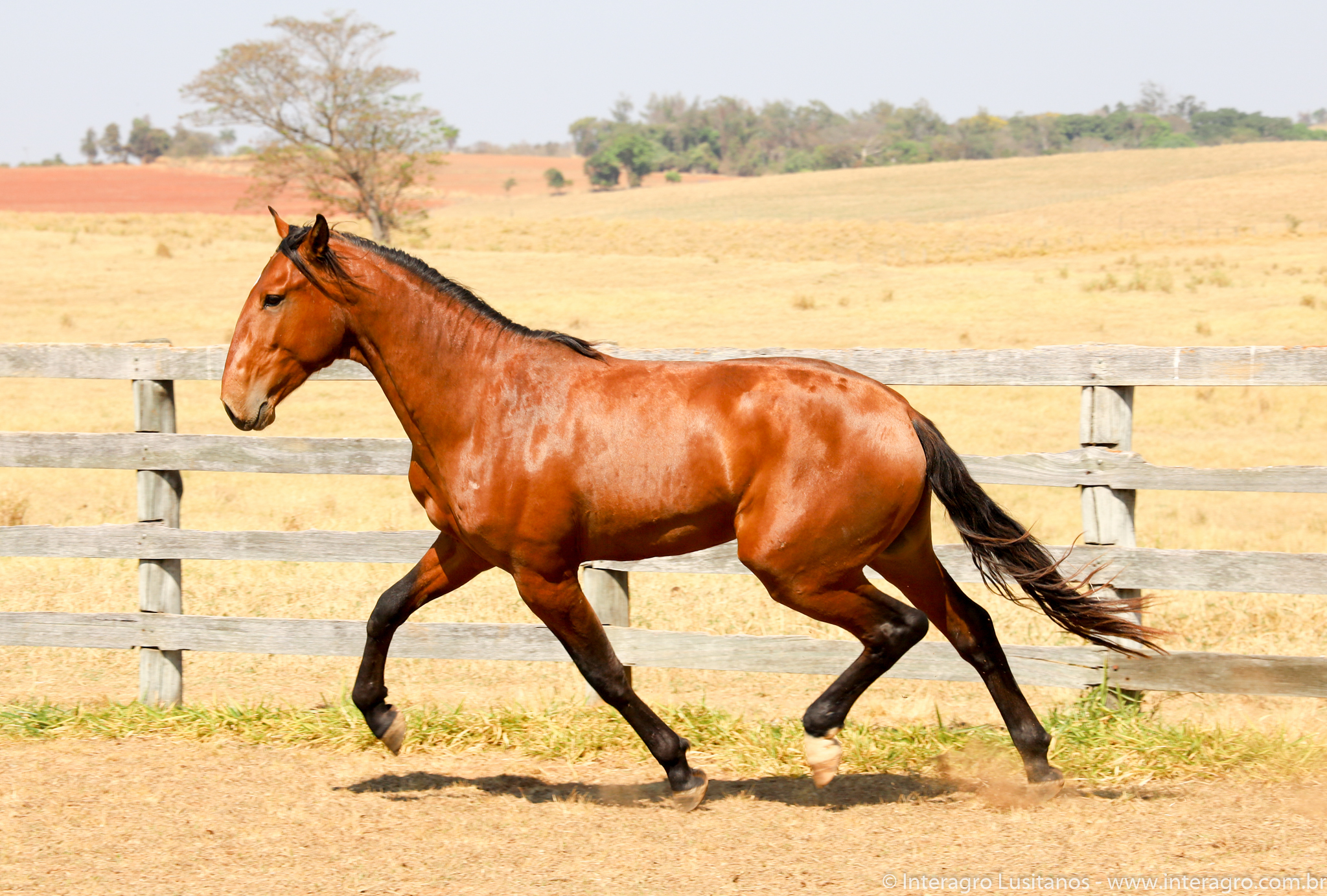 Son of the beautiful Liturgia Interagro, who died prematurely. Liturgia was a great mover, revised with 73,50 points out of Zaragoza Interagro, a stunning bay broodmare revised with 70 points who produced Estilo Interagro, the sire of our young broodmare Incerta Interagro, she also produced the talented Negrito Interagro. Liturgia´s sire, Destinado Interagro, was a horse with excellent gaits and was approved as a stallion with 71 points. He was the son of Morgada (MAC), imported from the famous Coimbra Stud Farm (MAC), a daughter of Zebra (MAC) with Distinto (MAC), Grand Champion in Lisbon, producer of great and excellent progeny in Brazil and Portugal. Her father, the remarkable Noblíssimo Interagro, has 7/8 Veiga and 1/8 Andrade blood, with ¼ inherited from his grandfather, the fabulous Xique-Xique (CI). Destinado produced excellent progeny bearing the great qualities of his rare and much sought after lineage, among them Locrus Interagro, Lombardo Interagro and Lord Interagro, all awarded in Dressage.