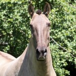 Upiki Interagro is a zebra-striped dark buckskin mare. Except for her height, she has the typical look of the ancient Sorraias, the wild horse of Portugal. Sired by Tufão Interagro [Nicola (MAC) x Cyclope (SA)], a beautiful golden-buckskin top stallion was bred to her five times and the offspring exceeded our most optimistic expectations. He was not only beautiful and unique in his appearance, but also a very functional horse, hard to describe without being influenced by his presence and charm.
